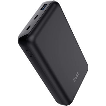 Baterie externa Trust Laro, 20000 mAh, 1x USB-A, 2x USB-C, 100W Power Delivery, Black, posibilitate incarcare laptop