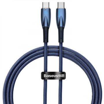 Cablu Crystal Shine Type-C la Type-C 100W 1.2m Impletitura Nailon Albastru